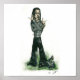Un original de John Stelmach que presenta a un Patryk estilizado con su fiel felino Semyaza. Muy metalizado, de hecho.