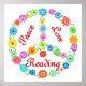 Share the fun of reading with this peace sign made of colorful flowers and the words - Peace Love Reading.