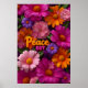 Póster Peace Out Hippie Floral Neon Peace Sign Pattern