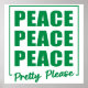 Peace Peace Peace Pretty Please Poster. This typography design layers “peace” in bold repetition, building importance, while a gentle “pretty please” in script softens the tone, a heartfelt, visual for harmony and understanding.