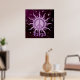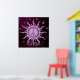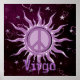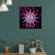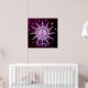 El sol y el símbolo de la paz celebran el mes de tu nacimiento en lavanda, lila y púrpura con estrellas.