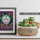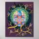 Esta imagen de color rico presenta una mandala detallada en su centro, que incorpora un pájaro estilizado y varios patrones florales, todo enmarcado en un fondo oscuro con ramas amarillas abstractas, creando una composición visual llamativa e intrincada.