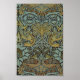 This design features an image of a fabric pattern designed by William Morris (1834–1896), who is famous for his association with the Arts and Crafts Movement. It shows peacock birds and stylized dragons; they are both set against a symmetrical background inspired by nature, showing complex forms of foliage.