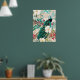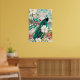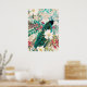 Un pavo real elegante le añadirá un toque de sofisticación a cualquier espacio. Decorado en tonos verde azulados y realzado con flores blancas y rojas.