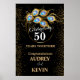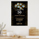 Elegante invitación al 50 aniversario de boda en negro y oro con anillo de oro y plumas de pavo real, cambia todo el texto usted mismo a cualquier aniversario o ocasión. Este signo se convertirá fácilmente a los tamaños de 20 x 30 o 24 x 36 pulgadas.