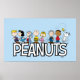 Echa un vistazo a esta alineación de la pandilla de los maníes, con Schroeder y Lucy, Linus con su manta, Charlie Brown y su hermana Sally, Pigpen, Franklin viendo la danza Snoopy y Woodstock volando sobre sus cabezas.