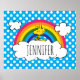 Personaliza este diseño super lindo con Woodstock sentado en una nube frente a un arcoiris colorido.