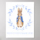 Pedro el conejo con corona de hojas azules 28 cm x 35.6 cm.