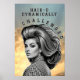 Este cautivador retrato monocromo redefine el "pelo grande" con un giro surrealista y vanguardista. Una mujer con una mirada clásica de mediados de siglo está coronada por un peinado imposiblemente voluminoso contra un cielo cálido de hora dorada. El texto "PELO-O DINÁMICAMENTE DESAFIADO" añade un toque de fantasía a la escena. Una exhibición perfecta para un salón comercial.