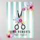 Póster Peluca estilista de cuero de oro y belleza a rayas