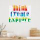 Piensa, Crea y Explora es un gran recordatorio de que puedes hacer estas cosas para ampliar tus horizontes. Esto será una gran adición al aula, campus u oficina. ¡Los educadores hacen que sus estudiantes piensen, creen y exploren las posibilidades! Los gerentes colocan esto en la sala de trabajo para inspirar a sus empleados.