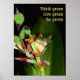Piensa en el poster Verde con una foto de una rana colorida pidiéndote "Piensa verde, vive verde, sé verde". Personalizable con tu propio texto si lo deseas. ¡Comparte tu mensaje para proteger la Tierra con un poster Think Green!