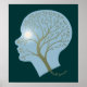 Silueta llamativa de una cabeza humana, con un árbol ramificado "sistema nervioso" y "ojo" de luna brillante, y la leyenda "Think Green". Camisetas, caramelos, cartas, regalos.