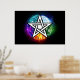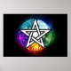 Pentagrama luminoso de dibujo artístico con cinco elementos mágicos, agua, tierra, fuego, astral, aire sobre fondo negro. Pentagrama de Wiccan. Wicca
