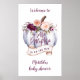Una calabaza pequeña cae una pancarta de fiesta de ducha de bebé en morado, verde y melocotón. Con hermosas acuarelas florales, follaje y diseño de calabaza. Diseño ideal otoño/otoño. Suficiente para una ducha neutra de género.