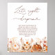 El Poster de juego Little Pumpkin Fall Floral Late Night Diapers encarna la esencia de la elegancia rústica y el encanto otoñal, invitando a sus seres queridos a celebrar la llegada de un pequeño y precioso en medio de la belleza de la temporada de otoño. Con su caprichosa representación de flores silvestres rústicas y una calabaza encantadora, que simboliza el calor y la abundancia, el artículo prepara el escenario para una reunión llena de amor, risas y recuerdos preciados. Como complemento de la estética rústica, la caligrafía moderna y elegante aporta un toque sofisticado a los objetos, que evoca una sensación de refinamiento y estilo. Con su mezcla de encanto rústico y elegancia moderna, este artículo promete una ducha de bebé tan encantadora como memorable, donde familia y amigos se reúnen para duchar a los futuros padres con amor y bendiciones mientras se embarcan en este nuevo capítulo de sus vidas. Los elementos coincidentes están disponibles.