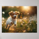 Póster Pequeño cachorro persiguiendo a una mariposa