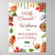 Un divertido y festivo cartel de bienvenida de inspiración italiana con acuarelas de pasta, tomates, albahaca y juguetones ilustraciones de espagueti. El alegre titular "¡Santo Cannoli!" hace que este cartel sea perfecto para una pequeña celebración de su primer cumpleaños. Disponible en varios tamaños, este diseño se exhibe muy bien en la entrada, en la mesa de postres o en la mesa de bienvenida. Ideal para los padres que buscan darle un toque encantador y temático al fiesta de su hijo. Un conservador encantador para recordar su celebración histórica.