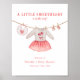 La temática de la ducha de bebé el día de San Valentín presenta un ilustracion de inspiración vintage con el vestido de un valentino, el bib y las tazas para bebés colgadas de la tela.