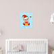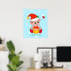 Pequeños Navidades elfo y pájaro cardenal rojo sobre Poster de fondo azul claro.