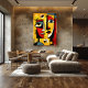 Un rostro abstracto llamativo dividido en formas geométricas audaces y colores contrastantes. Esta obra de arte contemporánea de expresión abstracta explora la dualidad, la percepción y la identidad, transformando la tensión emocional en una poderosa declaración moderna diseñada para coleccionistas e interiores expresivos.
