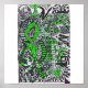 en el centro hay un alien sonriendo, su sonrisa en realidad dice amo (amar) debajo que dice que perder en la esquina inferior derecha dice que tu y la mente en el lado derecho pierden la mente. En la parte superior dice locura, yo soy un velero, la N es una serpiente comiendo el velero