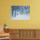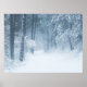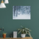 Fotografía paisajística de un bosque de invierno mágico y nevado.