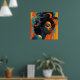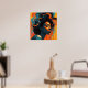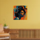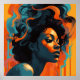 Este retrato abstracto de una joven mujer negra capta una sensación de emoción cruda y energía dinámica. Su rostro es un mosaico de formas jaleadas y colores llamativos, que da a entender un complejo mundo interior que no se descifra fácilmente. Las líneas y curvas de sus rasgos parecen estar en constante movimiento, como si el retrato fuera una instantánea de un momento fugaz en el tiempo. Sus ojos, que son el punto central de la composición, transmiten un sentido de intensidad y profundidad, atrayendo al espectador con su mirada penetrante. El fondo del retrato es una masa giratoria de patrones y texturas abstractas, que se suman al sentido general de movimiento y vitalidad. El retrato captura el espíritu y la esencia de la joven, evocando un sentido de fuerza y resiliencia que es cautivador e inspirador a la vez.