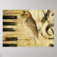 Póster Pergamino de época ~ Lechuza en piano