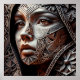 Pintura de arte digital de un acercamiento de la cara de una mujer en una coloración de arcilla metálica y fuertemente infundida con compleja geometría 3d. Este es otro diseño original de Hámster de Amueblado.