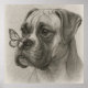 Captura un momento alentador con este perro Boxer con mariposa - poster de encuentro suave. Un encantador boceto de lápiz perfecto para los amantes del perro y del arte natural