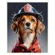 Póster Perro cachorro en acuarela uniforme para bomberos