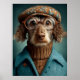 Un encantador perro antropomórfico vestido con un abrigo verde azulado, cuello de tortuga de punto marrón y boina estampada, con gafas redondas. Este retrato delicioso combina el brillo y la elegancia, lo que lo hace perfecto para los amantes de los animales y del arte por igual. Ideal para regalos únicos, decoración en casa o accesorios de moda de declaración.