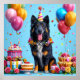 Póster Perro de cumpleaños con torta y globos