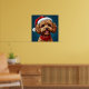 Perro alegre y esponjoso vestido con un sombrero de Santa Ana rojo festivo con guarnecido blanco y una bufanda roja a juego alrededor de su cuello. El pelo rizado del perro es de color cálido, dorado y marrón, y sus grandes ojos expresivos transmiten un sentido de alegría y alegría. El fondo es un azul profundo que realza los colores vivos de los accesorios del perro. En general, la imagen tiene un aspecto de fiesta y capricho, perfecto para las vacaciones de los navidades.