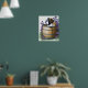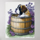 Traiga a casa el encanto eterno del perro de San Bernardo con nuestro cautivador poster con esta raza amada sentada con elegancia dentro de un rústico barril de madera, encarnando el epítome de la lealtad, la fuerza y la compañía.