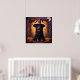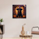 Póster Perro lindo en Gorra de brujas rodeado de calabaza