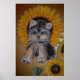 Póster Perro pequeño y girasoles bonitos