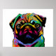 Una brillante y colorida imagen de un perro Pug sobre un fondo blanco.