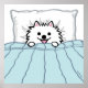 Pomerania blanca y adorable escondida en la cama. Arte mural para los amantes del Pom. ©Jenn Kay