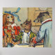 Ilustración antigua: Perros que están vestidos adecuadamente para la cena - Esta dulce imagen vintage de un perro feliz disfrutando de su comida es un regalo maravilloso para los amantes de los perros. La perra está usando un hermoso vestido victoriano largo y colorido, y lleva un sombrero de perro. El hermoso perro tiene un lazo azul brillante en su sombrero y lleva grandes lazos rojos en su vestido, solo para hacer que el pequeño perro se sienta femenino y es un perro tan bonito. La perra lleva las orejas largas, mientras que su compañero de perro macho tiene orejas cortas. El perro macho está disfrutando de una comida de jamón para perros, sentado correctamente en la mesa de perros victoriana, comiendo con las manos y cubiertos, como un perro victoriano adecuado. ¡Mira, le está diciendo a la perra lo maravilloso que es su café! Este perrito lleva una hermosa chaqueta verde y se ha metido la servilleta en el cuello para no derramar en su hermoso traje de perro. El perro macho mira cariñosamente a su camarera femenina, como si dijera: "¡Gracias por la deliciosa comida para perros! ¡Eres una cocinera maravillosa!". ¡Qué ilustración tan divertida! A los victorianos les encantaba dar a sus animales características humanas y vestirlos con