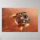 Concepto artístico del rover de perseverancia que dispara sus motores de etapa descendente a medida que se acerca la superficie marciana. Esta fase de su entrada, descenso y secuencia de aterrizaje, se conoce como descenso de potencia.