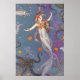 Persigue Arcoíris Nadar con Sirenas, Monta Unicornios. Una dulce ilustración de una sirena para el cuarto de una niña, guardería o habitación de una niña mayor también. Azul marino, púrpura y coral con un toque de rosa.