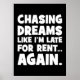 Póster Persiguiendo sueños como si llegara tarde al alqui