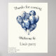 Bienvenido a los huéspedes con estilo con este poster de bienvenida de espuma, muy bien hecho, diseñado especialmente para la celebración perfecta del cumpleaños. El poster presenta un fondo cremoso y suave adornado con globos pintados con una acuarela azul Delft, lo que le confiere un aspecto atemporal, pintado a mano, inspirado en el diseño tradicional holandés. En la parte superior, un elegante guión en la fuente Garamond agradece a los invitados por venir y en Coromant da la bienvenida a los invitados con el fiesta "Bienvenidos al [Nombre]". Los detalles del evento (Fecha de Cumpleaños y Ubicación Fiesta) se presentan con elegancia en el tipo de letra romana de Garamond, ofreciendo un ambiente sofisticado y clásico. Este poster hace la primera impresión perfecta, ideal para ubicarse en la entrada del recinto fiesta o cerca de un telón de fondo fotográfico. Una pieza única y encantadora que mezcla tradición artística con alegría de cumpleaños.