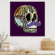 Ilustracion tachado a mano de un cráneo de azúcar del Día de los Muertos con un bigote afilado! Cambia el color de fondo o agrega texto para personalizar y tienes un poster increíble! Esta es la versión en color, también hay versiones en blanco y negro y vintage, así que revisa todos los diseños y productos disponibles.