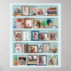 No encontrará una manera más única y hermosa de mostrar a su familia o recuerdos bodas que este poster de fotos colgantes con temática playera. Este magnífico poster náutico incluye 19 de tus fotos personalizadas, hechas para parecer que están en marcos sobre una biblioteca de madera verde azulada azul clara. Tus fotos están rodeadas de libros antiguos, un reloj y recuerdos de la orilla del mar que incluyen: conchas, flores, coral, una gaviota, un barco modelo, una piña, un faro, una estrella de mar, un pescado y un ancla. Su monograma se sienta en el estante medio. Los colores son principalmente azul verde azulado, azul marino, crema y rosa coral claro con toques de bronce falso, dorado, marrón, verde y rojo. PARA PERSONALIZAR: utilice las plantillas simples. Simplemente sigue las instrucciones y tus fotos llenarán los marcos. Sugerencia: Cualquier forma de foto llenará cada marco (así que si subes un cuadrado en el lugar de un vertical, seguirá llenando el marco, pero algunos se cortarán). Para obtener ayuda, póngase en contacto con PictureCollage.
