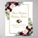 Póster Personalizado Boda Floral de oro azul borgoñés