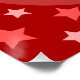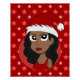 Diseño con un ilustracion de hermosa joven afroamericana con cabello ondulado y el gorra de Santa Claus, Navidades diseño de vacaciones con un fondo rojo con estrellas, de Radka Kavalcova