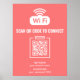 Este poster está diseñado para animar a la gente a usar sus smartphones para conectarse rápida y fácilmente a las redes WIFI. Se trata de una decoración moderna en tonos blancos y rosas que destaca y es fácil de distinguir.